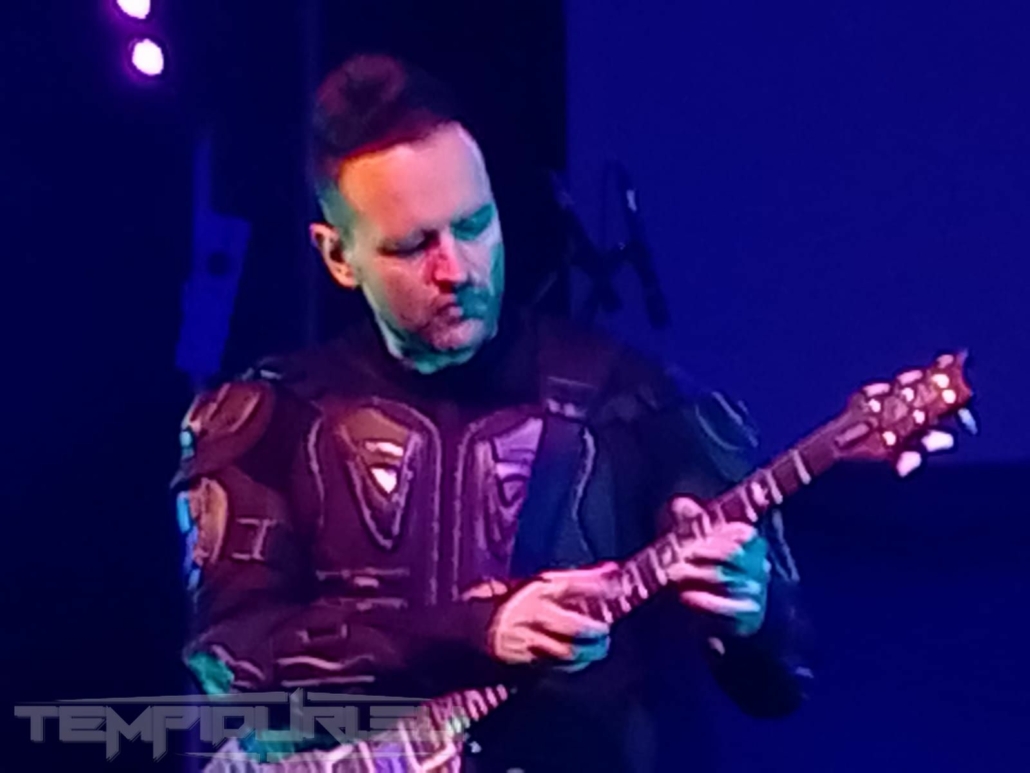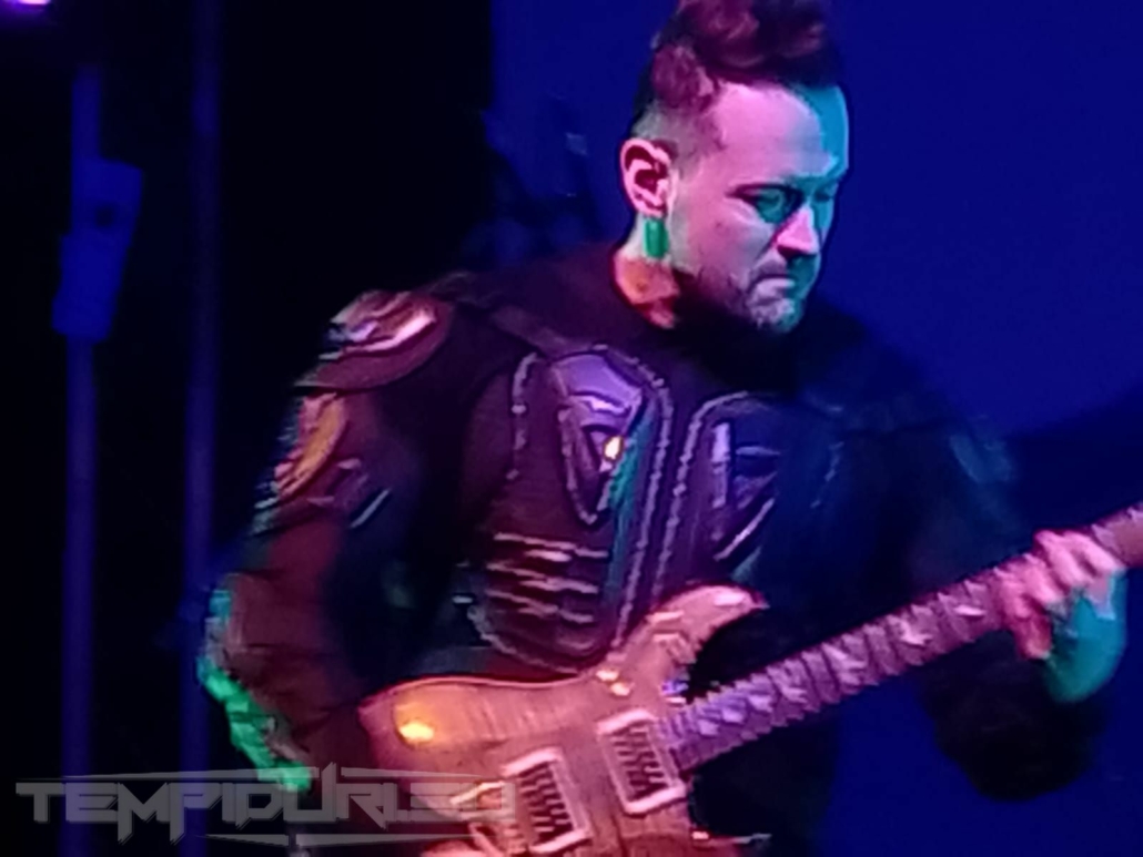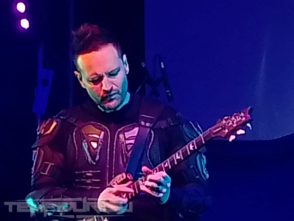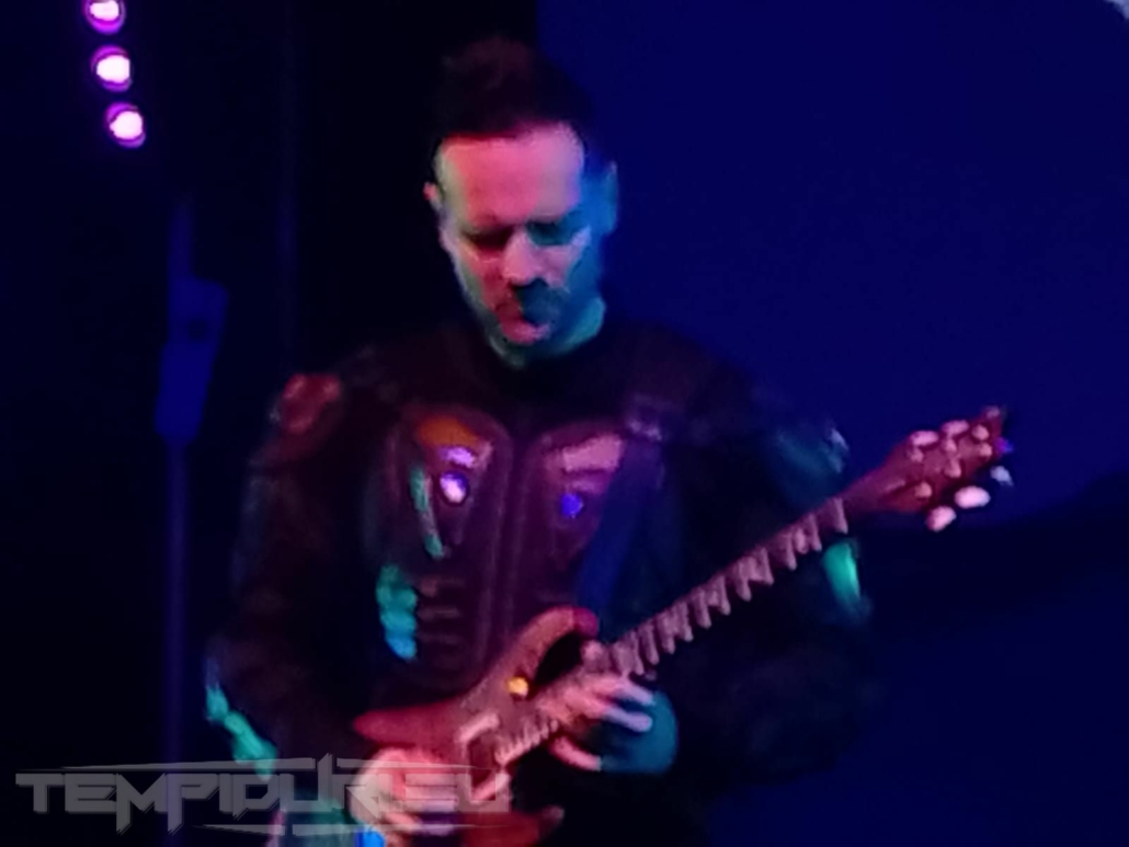 L’apertura dello show è affidata ad Andy Addams per me un misconosciuto, ma documentandomi ho letto che ha presenziato come spalla a vari show in apertura di band quali Symphony X, Skid Row, Kiko Loureiro(Megadeth e Angra) e addirittura ad uno show di Ozzy Osbourne nel 2010. E’ una performance che non delude, un intro tre tracce ed un medley, lui risulta molto virtuoso è un guitar hero a metà fra Steve Vai come stranezze soprattutto il giubbotto dove si accendono le lampadine a mo di alieno che viene da un altro pianeta, Steve Morse come tecnicismi e un pò Michael Romeo dei Symphony X .