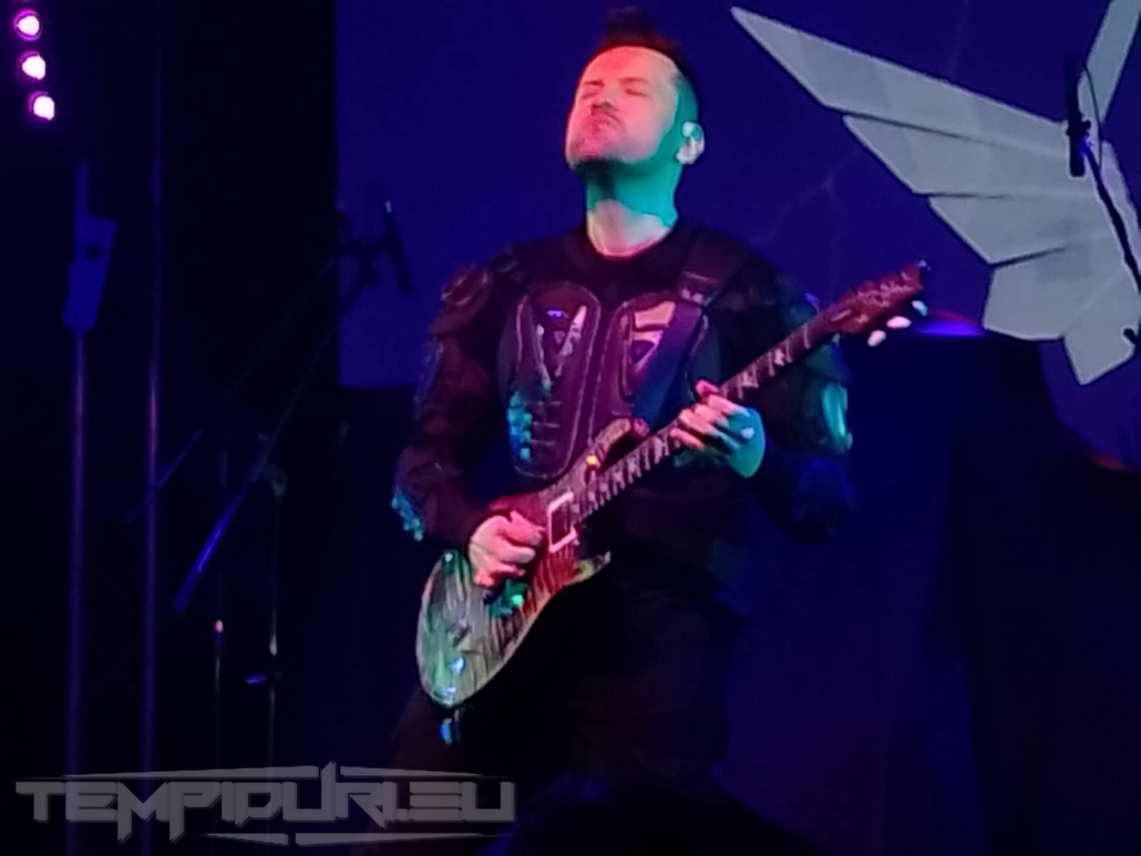 Sicuramente bravo pulito e tecnico nel tapping e nelle strutture di ritmica, però un pò esagerato è un modo di suonare molto mnemonico e non di cuore, la cosa che secondo me fa è che esaspera un pò troppo i brani, il mio orecchio è abituato a gente come Jeff Loomis ed al fu maestro Chuck Schuldiner dei Death/Control Denied ma de gustibus. Brano che mi ha intrigato di più il medley finale dove ci saggia anche con un brano dei Van Halen “Ain’t Talkin’ ‘bout Love”. Sicuramente un buon inizio dello show della serata, che ha acceso gli animi delle persone visto il caloroso applauso, indubbiamente è stato anche molto cordiale raccontando brevemente la sua esperienza live quando si è presentato, ed interagendo con il pubblico in maniera affabile cordiale, per me promosso.