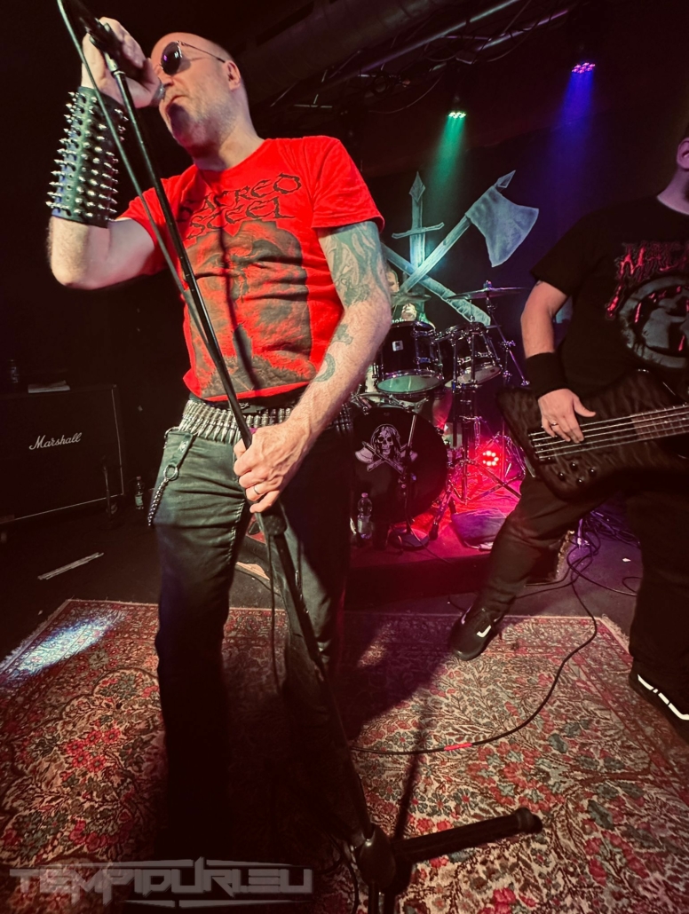 Ed ora l’ultima band di chiusura i Tedeschi  Sacred Steel  . Purtroppo e devo dirlo a malincuore mi era  successo anche in passato quando vidi i  Cradle of  Filth  a Roma nel lontano 2009, le aspettative erano  molte anche se suonarono bene non ressero il  confronto con la band prima di loro che faceva da  spalla i  Moonspell,  che oscurarono completamente  il loro show con la loro performance strepitosa  grazie al cantante  Fernando Ribeiro  in stato di  grazia e stessa cosa accadde per il concerto del 2016    degli  Absu  a Roma al Traffic Live anche lì  prima di loro ci fu una band  band Italiana i  Darkend  che grazie alla maestria ed alla  performance del Singer  Luca Gregori  e del mastro  Valenti Riccardo  alla batteria e del resto della  band anche lì “Puff” per magia sparirono anche gli Absu . Purtroppo a volte è pericoloso portare una  band troppo brava come spalla si rivela un’arma a  doppio taglio….. Ma torniamo al presente e  analizziamo i  Sacred Steel,  presenti dalle scene già  dal loro primo demo del 1996 sono i capisaldi della  seconda bordata del  New British Heavy Us  Metal/Speed Metal.  Il loro show propone 13 brani  più tre dell’encore per un totale di sedici che  ripercorre la loro intera discografia, cosa che ho  notato di differente è che rispetto alla precedente  band non hanno brillato dal vivo, anzi la scaletta  non era molto omogenea.