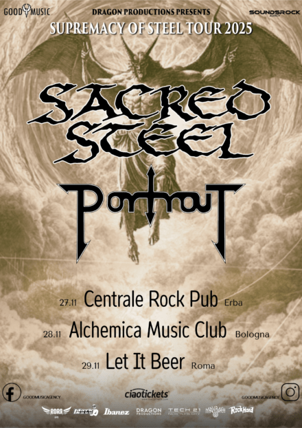 Chiude lo show un encore di  tre brani una discreta ed atmosferica  Entombed  Within the Iron Walls of Dis  dal loro ultimo  album che come dicevo prima fa piacere questo  modo d’interpretazione di nuovi territori musicali del  metal della band anche se il brano non è all’altezza  della song  Bedlam Eternal  e chiudono lo show con  due brani dall’album  War Gods Of Metal, Heavy  Metal to the End  e  Tonight the Witches Ride  entrambi di accompagnamento ma nulla più. In  conclusione l’applauso c’è stato più che sincero, la  gente si è divertita, ma si è sentito proprio il divario  fra i due gruppi che si sono esibiti. Per carità i  Sacred Steel  sono bravi ed esibiti a dovere con  suoni e dedizione, è gente mestierante che calca da  trenta anni le scene, ma è stato uno show non  proprio omogeneo con luci ed ombre. Come  sicuramente l’abbigliamento del cantante secondo  me troppo adolescenziale, neanche  Bruce  Dickinson  appena entrato in  The Number Of the  Beast  ha mai indossato  la maglia della sua band e  li parliamo che aveva 24 anni, ma  a 56 anni  bisogna cercare di avere un look un pò più  personale anche con pelle e borchie, ma con questa  maglia rossa della band e il resto pantaloni strappati  secondo me stonava poi de gustibus l’unico di loro  che aveva stile era il chitarrista  Jörn Langenfeld.  Non me ne vogliano a male e non fraintendete il mio  pensiero di reporter i  Sacred Steel  mi sono piaciuti  ma non eccessivamente comunque hanno dato  prova di far passare una lieta serata agli astanti  promossi.