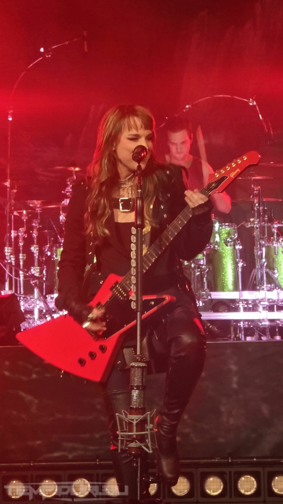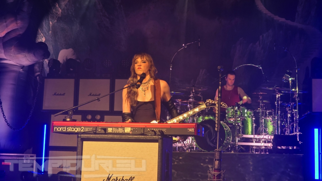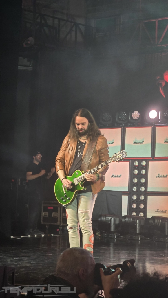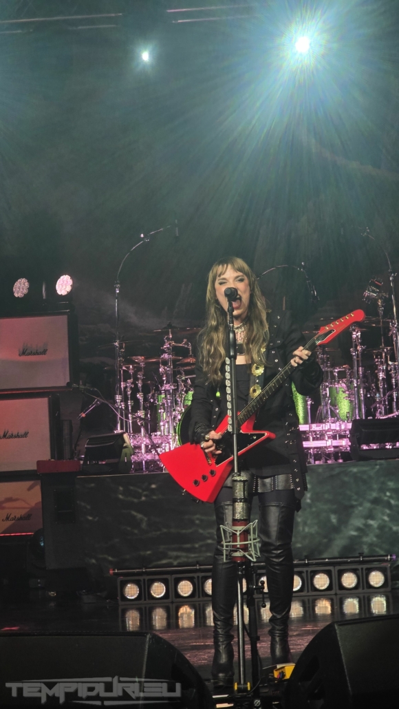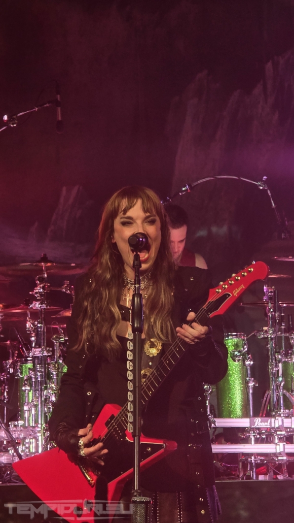 Un’introduzione spettacolare, degna di una band che conosce perfettamente l’arte della teatralità. Quando il telo è caduto e gli Halestorm sono esplosi sul palco, la sala è impazzita.È difficile descrivere l’impatto di Lzzy Hale senza scadere nell’iperbole. La sua voce è un fenomeno naturale, un turbine di potenza, precisione e sensibilità che riesce a passare dall’urlo più feroce a un sussurro carico d’anima nel giro di un respiro. In ogni brano, Lzzy ha mostrato un controllo tecnico assoluto: estensione immensa, vibrato, armonici nitidi e voce graffiante. Ma la cosa più incredibile è stata l’intensità. Ogni parola sembrava vissuta, ogni verso aveva un peso emotivo reale.