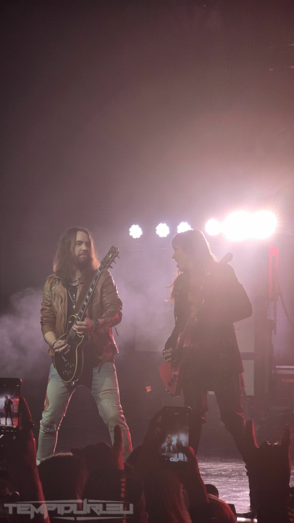 Lzzy non interpreta: domina la scena, si muove con la sicurezza di chi conosce il palco come un’estensione del proprio corpo. E tra una canzone e l’altra, cambia chitarra con una naturalezza che sfiora la ritualità — una diversa per quasi ogni canzone, ognuna scelta per restituire il tono perfetto.Il lavoro tecnico della band è stato altrettanto impeccabile. Arejay Hale, il fratello minore, ha incendiato la batteria con un assolo poderoso e teatrale, mentre Joe Hottinger e Josh Smith hanno dato solidità e coerenza a un suono che, all’Alcatraz, è risultato stupefacente: potente ma nitido, con ogni strumento perfettamente bilanciato.