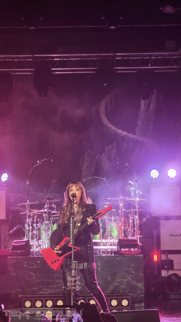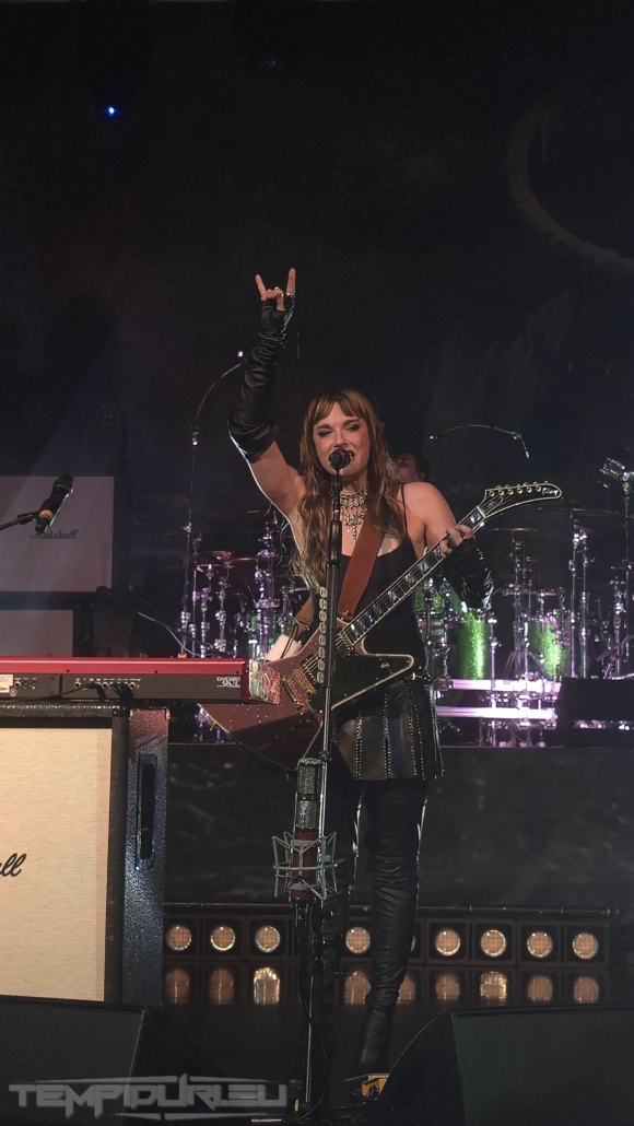 Durante “Mz. Hyde” e “I Get Off”, il pubblico si è lasciato travolgere dal suo carisma magnetico. L’inizio di questi pezzi è stato un po’ agitato in quanto un gruppo di spettatori nelle prime file ha generato momenti di subbuglio, con spinte e piccoli tafferugli. La band, accorgendosene, ha interrotto per qualche istante l’esecuzione, e Lzzy, con la calma e l’autorità di una veterana, ha chiesto se fosse tutto ok per godersi lo show. Applausi unanimi, rispetto immediato, e da lì in poi — solo pura energia.