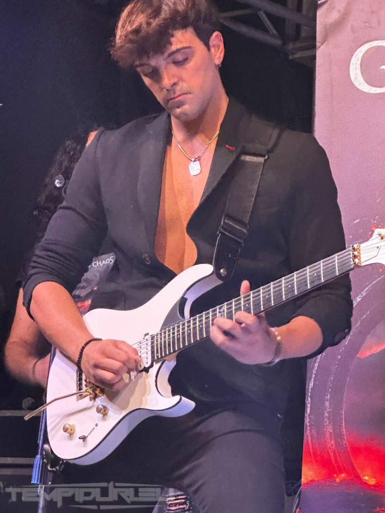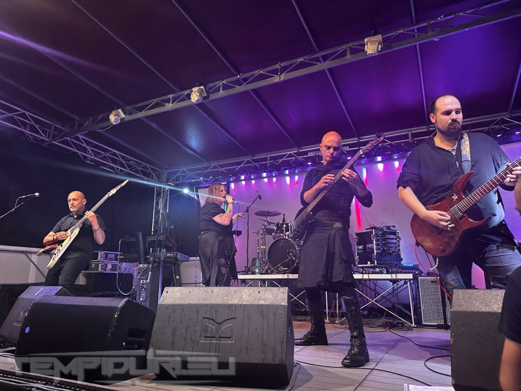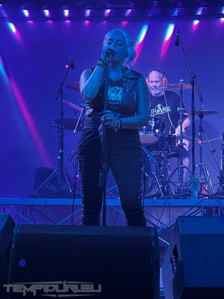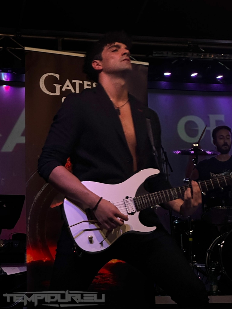 Per motivi di lavoro,permessi,famiglia, inizio precoce dello show e tempi tecnici di traffico noi di Tempi Duri abbiamo iniziato ad assistere a questo evento dalla seconda band dalla capitale i Noage. La scaletta di questa loro performance prende cinque brani dal loro album uscito nel 2023 From Darkness To Life. E’ una band che propone un symphonic metal a metà fra i Nightwish con tocchi catchy alla Evanescence, obiettivamente non si presentano male dal vivo il suono è compatto per come la vedo io sono ancora un pochino in embrione ma valore aggiunto della band sono la chitarra nel nome di Michele Sierra veramente bravo nei solos e nelle tessiture delle trame e nella sezione del basso di Michele Raspanti non ci sono dubbi sulla sua bravura essendo membro anche di band storiche come Graal e S.O.S. dove era presente il compianto Fernando Regaldo grande amico che purtroppo è venuto a mancare nel 2017 per un infarto, purtroppo grave perdita nel mondo della musica io dico anche a livello nazionale perché gli S.O.S. erano e sono veramente bravi essendo band di punta dell’AOR Italiano.
