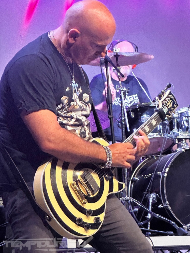 E’ il momento dell’ultima band la novità è che io li vidi il 05 /03/2016 al Traffic Live di Roma come headliner fu un ottimo show di cui ho fatto altrettanto una buona descrizione nel mio report, esaltando le qualità della band e la bravura dell’ex cantante Terence Holler che posso che confermare, ma purtroppo non riesco a dire altrettanto a livello umano, troppo borioso per i miei gusti, sinceramente mi chiedo come hanno fatto a sopportarlo per tutti questi anni io con il mio carattere non ci sarei riuscito. Ma tornando allo show di oggi le nove tracce vengono per la maggiore dal loro lavoro Innervoid detto dal maestro delle sei corde Eugene Simone, forse un modo per tagliare il cordone ombelicale del passato e guardare avanti in una nuova veste più tecnica molto simile ai nuovi Kamelot però fusi con i Pagan’s