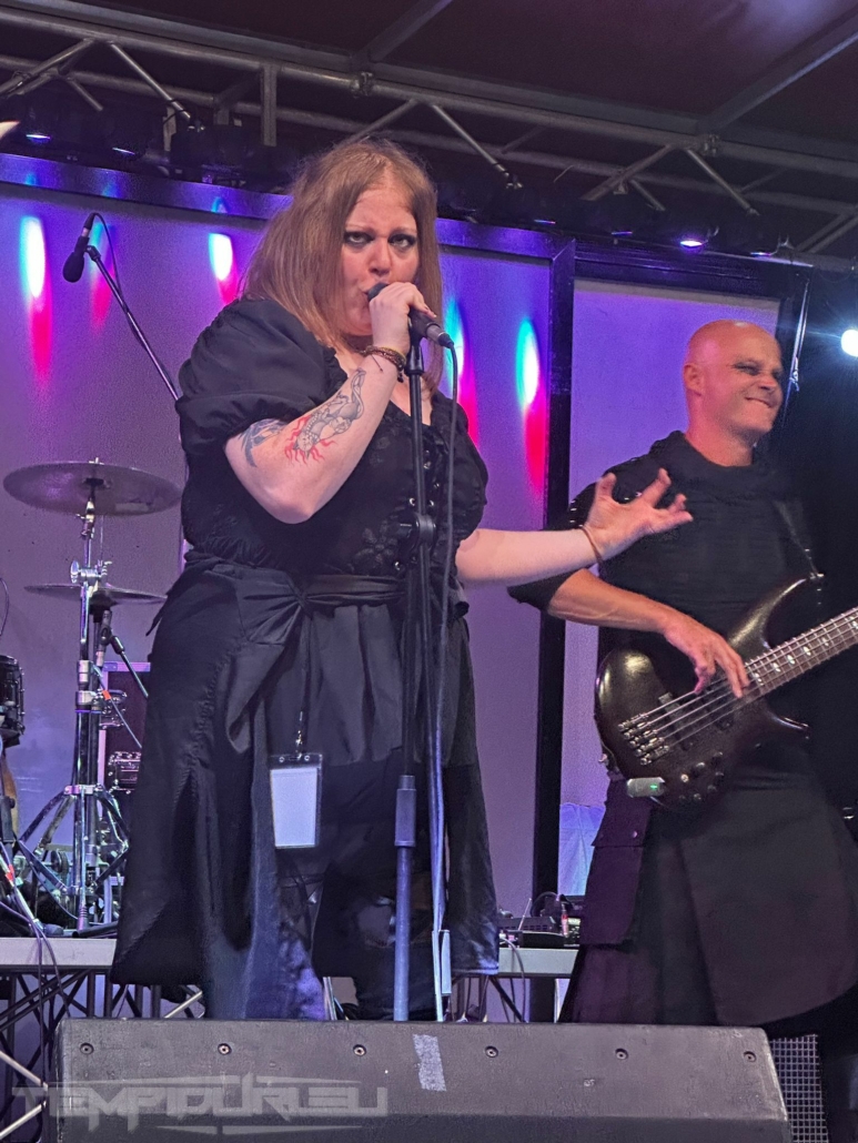 Mind/Nevermore in una veste più cattiva e diretta come nel brano Born On Cold Ash dove oltre al gran lavoro di tutta la band un plauso a Eugene un vero asso alle corde con un assolo notevole a metà brano. Elegy of Lust è uno dei brani dove c’è la presentazione del nuovo cantante Alex Jarusso qui si dimostra che hanno trovato il degno sostituto in questa nuova pelle, elevature vocali degne di un professionista e ve lo garantisco personalmente perchè purtroppo durante il loro show ci sono stati problemi tecnici, eppure anche senza microfono si sentiva chiaramente la sua potente ed incisiva voce. C’è tempo anche di acciuffare brani come Bleed Mask Bleed, The dark Inside , Changing Blood e Ghoulish Gift è un tuffo nel passato dove la voce del singer si accomoda in maniera perfetta su questi brani non recenti facendoli suoi, ed il resto della band non fa che porre certezza alla qualità della gruppo come il loro tastierista storico Olegg Smirnoff alias Giacomo Biagini tornato all’ovile nel 2019 con le sue partiture di melodie, tesse un muro sonoro di tastiere che avvolge ogni singola nota dei brani e le sue entrate non fanno altro che dare più corpo ai pezzi.