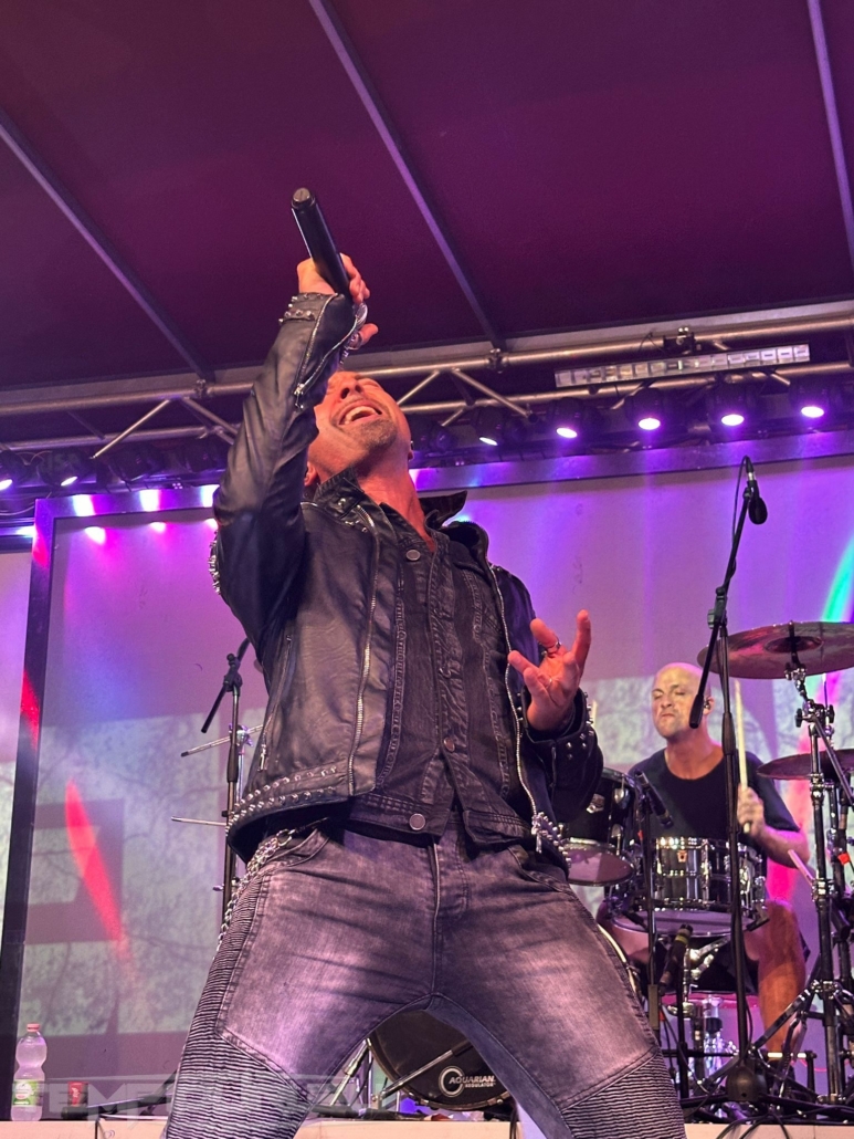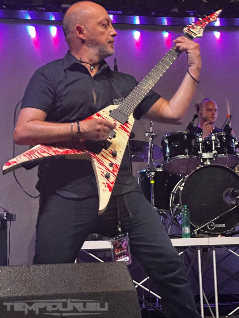 Rock Ramon (Alessandro Sonato) aveva più carisma e presenza, Tiziano è bravo e simpatico, ha una bella voce scherza con il pubblico improvvisando anche una cover dei Twisted Sister “ we’re not gonna take it” , durante un problema audio tecnico nello show, a mio avviso è come aver inserito Blaze Bayley. Tornando allo show la combo degli otto pezzi suonati saccheggia lentamente tutta la loro discografia dagli esordi al brano No One’s Crying del loro primo album che fu cantato in una riedizione da sua maestà Ralph Scheepers dei Primal Fear, a Thundergods per poi passare a cose più recenti.