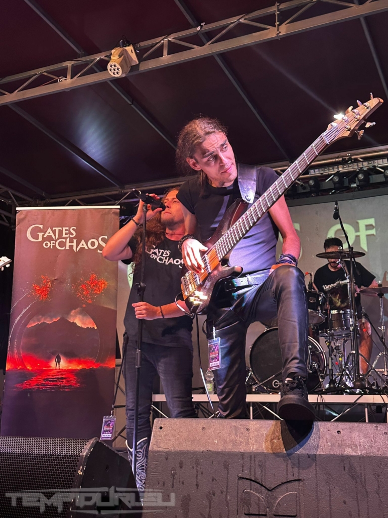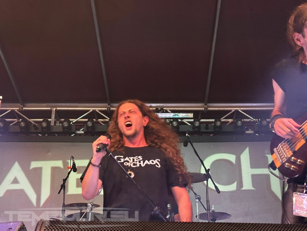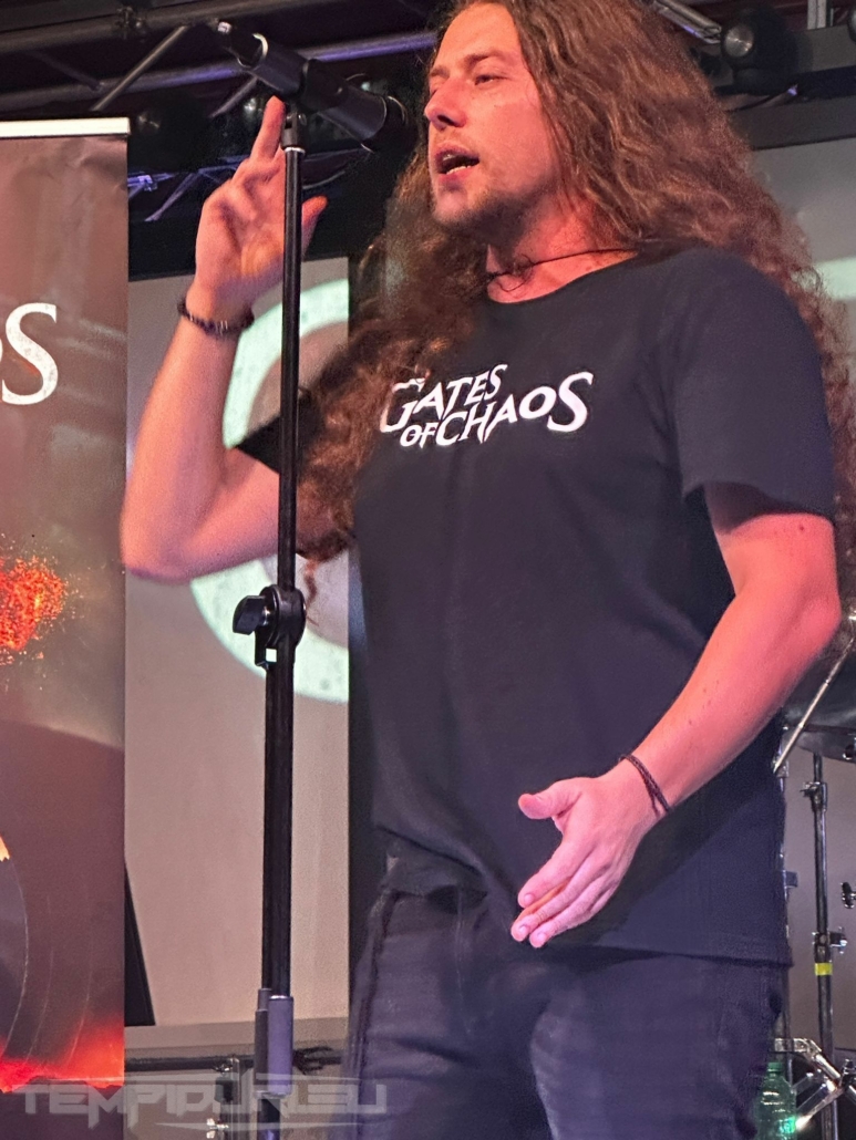 Quarta band sono I Gates Of Chaos già visti a maggio di spalla ai Vicious Rumors al Pianeta Sonoro. Cosa dire in merito, che sinceramente come ho scritto nel precedente report è una band ancora acerba in crescita dove si notano delle qualità, dove il cantante marco De angeli ex Dharma Storm ha trovato la quadra in un genere totalmente suo, una valida alternativa ai Rhapsody Of Fire , dove il perno è proprio lui con la sua voce, grazie all’enfasi che mette nelle parti narrate e dove ho consigliato personalmente di protendere ad un approccio più aggressivo alla David De Feis dei Virgin Steele .