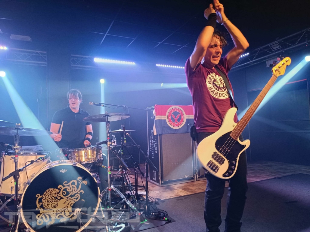 Quando aprono i cancelli la gente comincia a popolare il locale, durante l’attesa raggiungono già un buon numero, solitamente quando inizia lo show le luci si spengono, invece TUK SMITH AND THE RESTLESS HEARTS fanno un entrata anonima, in tutta calma fanno l’ultimo settaggio agli strumenti, dopodiché tre colpi di piatto ed iniziano con Little Renegade.