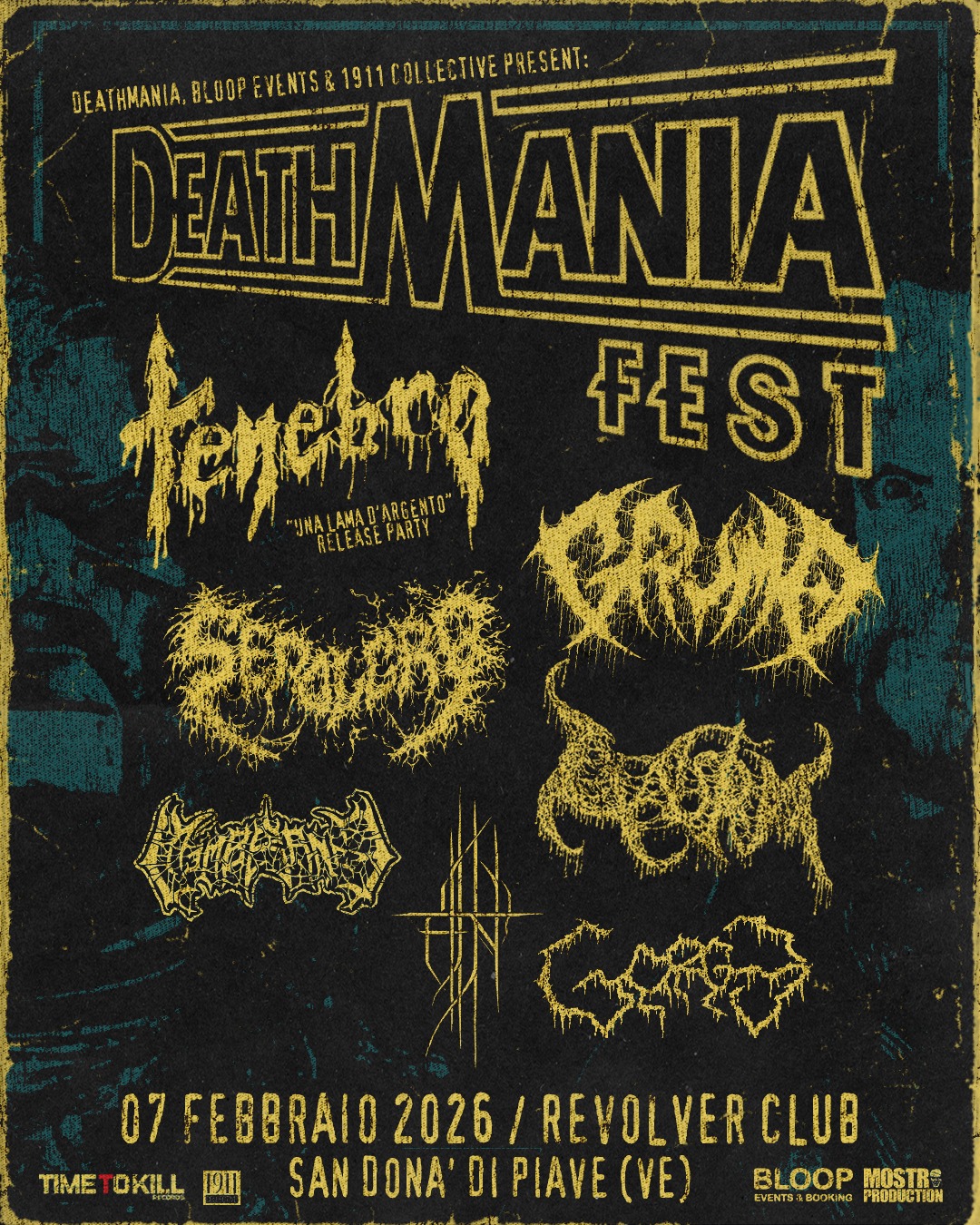 L’appuntamento è per sabato 7 febbraio 2026 al Revolver Club di San Donà di Piave (VE), con un bill d’eccezione: TENEBRO (“Una Lama d’Argento” release party), SEPOLCRO, GRUMO, SEIN (per la prima volta live), CLAUSTRUM, MEBRANCE e GORGE.