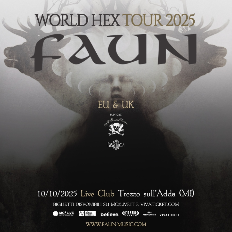 Tra pochi giorni torneranno in Italia i FAUN: l’apprezzata formazione folk tedesca, nota per la capacità di unire gli strumenti medievali con la musica moderna, sarà in concerto venerdì 10 ottobre 2025 al Live Club di Trezzo sull’Adda (MI).Prima di loro saliranno sul palco Ye Banished Privateers e Fredriksson & Pettersson.