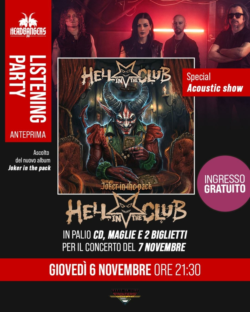 Hell in the Club: info e orari del release party del 7 Novembre allo Slaughter Club E’ tutto pronto per il release party di “Joker in the Pack”, il nuovo album degli Hell in the Club che uscirà via Frontiers Record il 7 novembre.