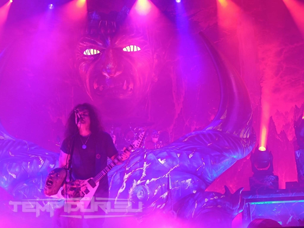 Mille Petrozza e compagni sono agguerriti più che mai, canzone dopo canzone generano uno tzunami che travolge ogni cosa, in platea l’orda di fans scatena il chaos totale, nel moshpit tutti si scontrano come atomi impazziti, sotto il comando del frontman i circle pit diventano i gironi dell’inferno, le walls of death delle trappole mortali e il crowd surfing è fuori controllo. Il repertorio proposto è una serie di scosse telluriche come Enemy of God, Hate Über Alles, Betrayer, Satan Is Real, Endless Pain, che non lasciano scampo oltre ai nuovi brani come la titletrack, Satanic Anarchy e Tränenpalast, quest’ultima vede la partecipazione della potente Britta Görtz cantante degli Hiraes.