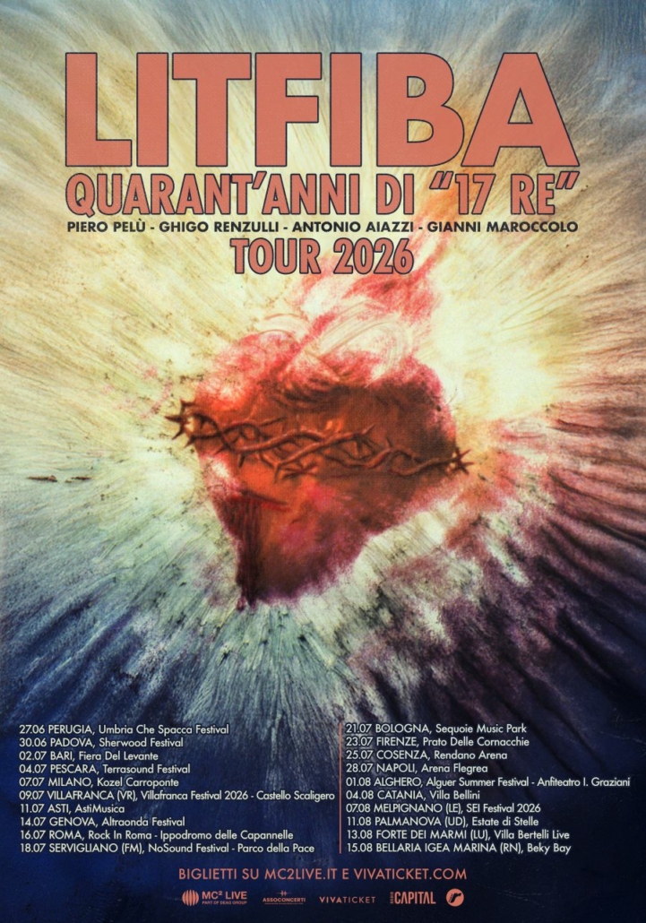 Il 2026 sarà l’anno del ritorno sul palco dei LITFIBA degli anni ’80 con la formazione originale, un tour di 20 date in giro per l’Italia per celebrare i quarant’anni di “17 Re”, il disco che ha segnato una svolta epocale nel rock italiano e consacrato la band fiorentina a livello nazionale e europeo.“QUARANT’ANNI di 17 RE” – TOUR 2026 riunirà sullo stesso palco Piero Pelù, Ghigo Renzulli, Antonio Aiazzi e Gianni Maroccolo per riportare dal vivo le emozioni, la potenza, l’energia e la poesia visionaria e anticipatrice di uno dei capitoli più amati della storia del rock europeo.