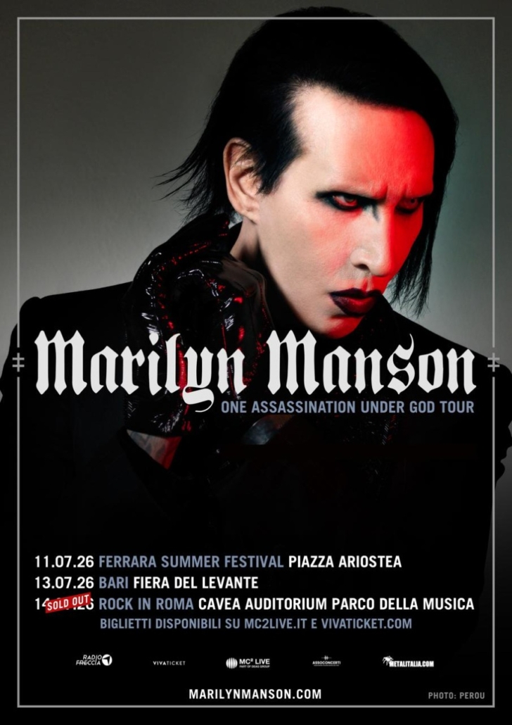 Prosegue il successo di MARILYN MANSON in Italia. L’artista americano, reduce dal grandioso concerto svoltosi alla ChorusLife Arena di Bergamo pochi giorni fa, annuncia oggi il sold out della data estiva prevista al Rock In Roma (presso la Cavea Auditorium Parco della Musica) il 14 luglio 2026.Restano ancora disponibili biglietti per gli altri concerti estivi di MARILYN MANSON che si terranno al Ferrara Summer Festival sabato 11 luglio 2026 e alla Fiera del Levante di Bari il 13 luglio 2026.Tagliandi già in vendita su MC2Live.it, Vivaticket.com e relativi punti vendita.