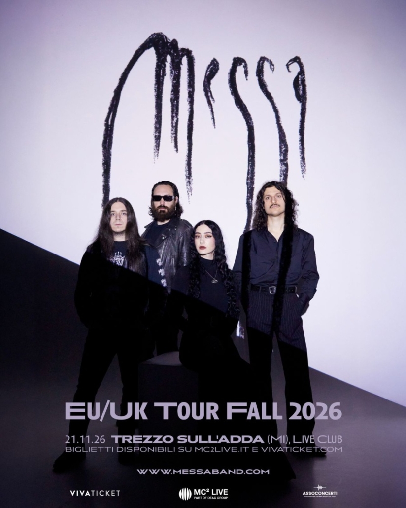 La data italiana si terrà sabato 21 novembre 2026 al Live Club di Trezzo sull’Adda (MI). In apertura si esibiranno altre band che saranno prossimamente comunicate.Biglietti in vendita da venerdì 20 febbraio ore 10:00 su Messaband.com, MC2live.it e Vivaticket.com.Dopo aver incantato il pubblico europeo lo scorso autunno durante il tour in supporto ai Paradise Lost e quello italiano nelle recenti date sold-out, i MESSA non vedono l’ora di riportare il loro caratteristico mix di doom metal intenso e atmosferico sui palchi di Europa e Regno Unito.