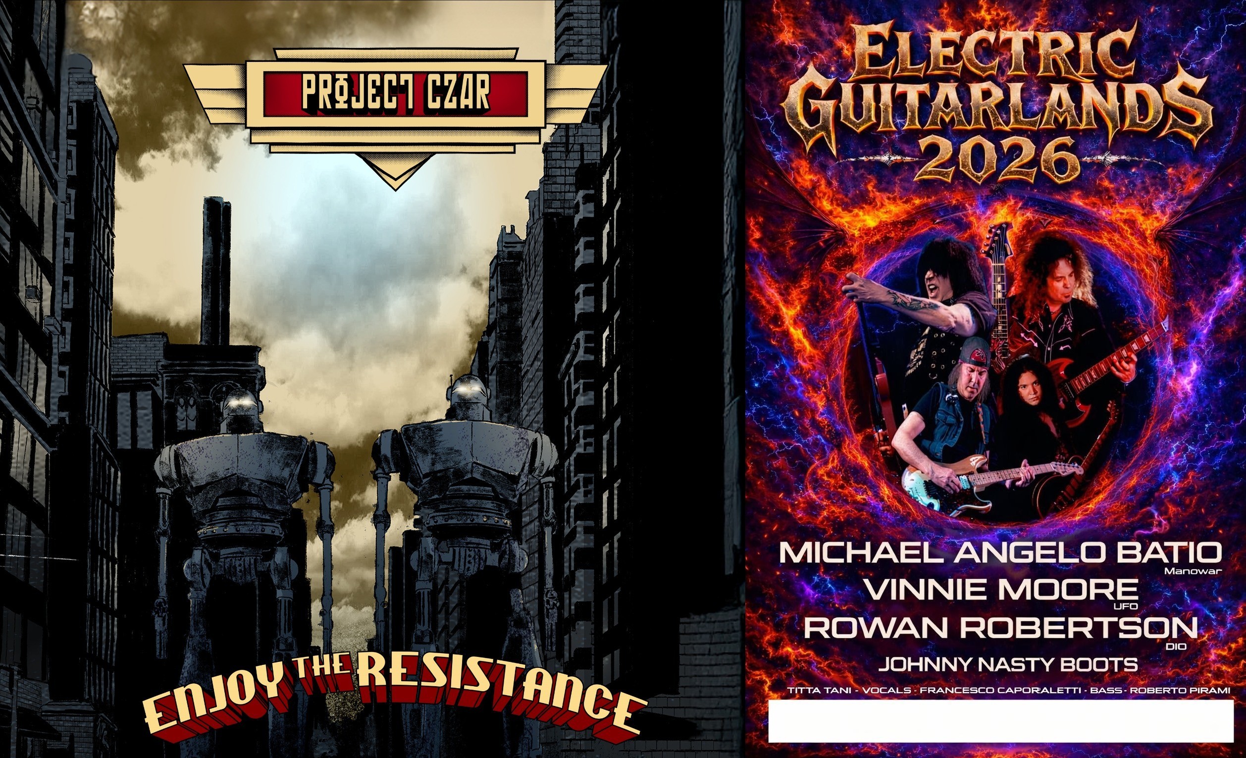 Nel tour di presentazione del nuovo album Enjoy the resistance, uscito per la Udu Records il 10 dicembre 2025 scorso, i Project Czar toccano il kill Joy di via Appia Nuova a Roma il 30 aprile e il Rock N Roll di Rho (Milano) il 1 maggio p.v. Suoneranno di apertura all’Electric Guitarlands 2026 che vedrà esibirsi Michael Angelo Batio, Vinnie Moore, Rowan Robertson, Johnny Nasty Boots, accompagnati dalla band di eccezione formata da Titta Tani alla voce, Francesco Caporaletti al basso, Roberto Pirami alla batteria.