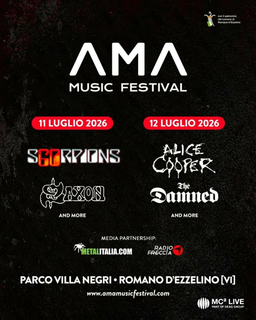 Dopo il grande successo delle ultime edizioni, AMA Music Festival annuncia ufficialmente il suo ritorno nell’estate 2026, svelando le prime due date di luglio dedicate all’hard rock e al rock più iconico di sempre. L’appuntamento è fissato per sabato 11 e domenica 12 luglio 2026 nella ormai consolidata location del Parco di Villa Negri a Romano d’Ezzelino (VI). L’annuncio del 2026 arriva sulla scia di una edizione 2025 particolarmente significativa, che ha ulteriormente affermato AMA Music Festival come uno degli appuntamenti musicali più rilevanti dell’estate italiana.L’edizione 2025 ha registrato oltre 57.000 presenze complessive, confermando una partecipazione straordinaria nonostante le condizioni meteo instabili, segno di una community fedele e appassionata.