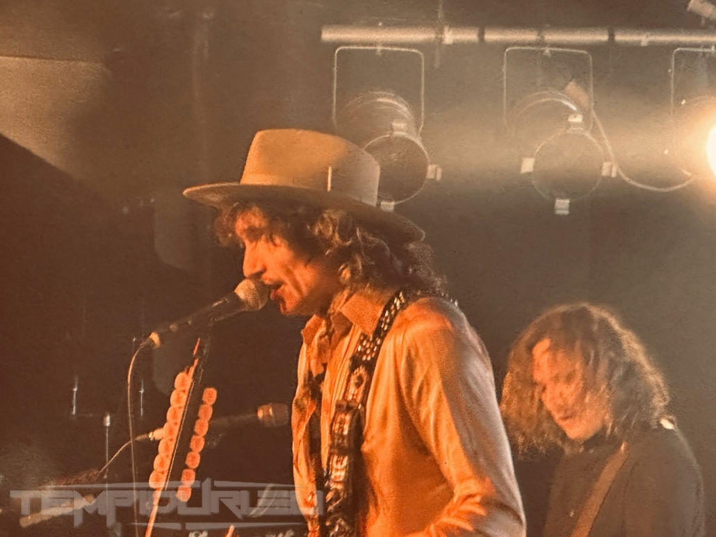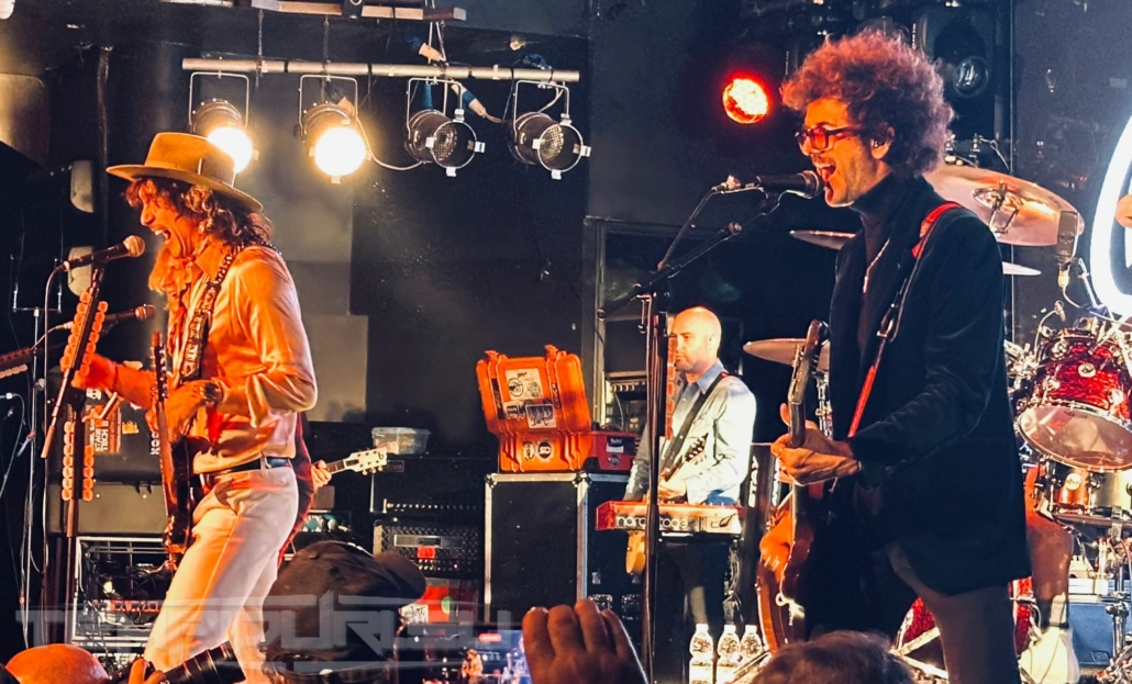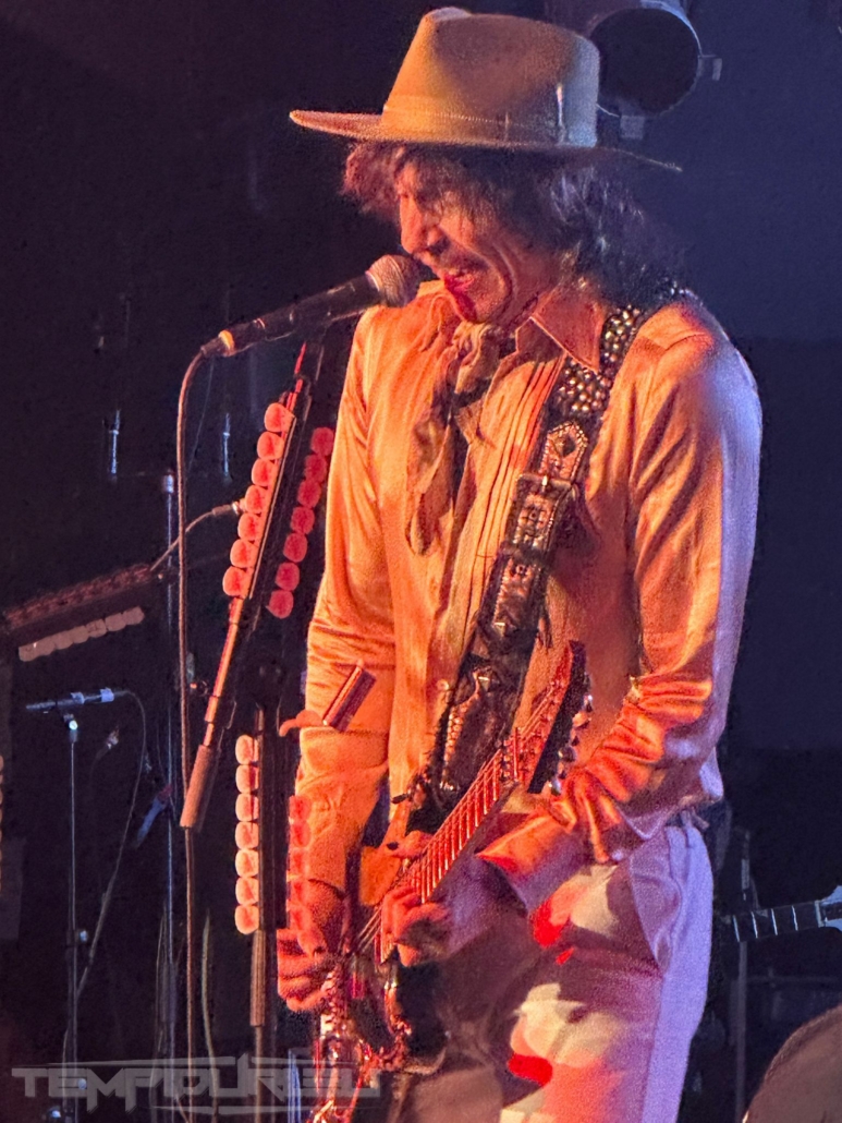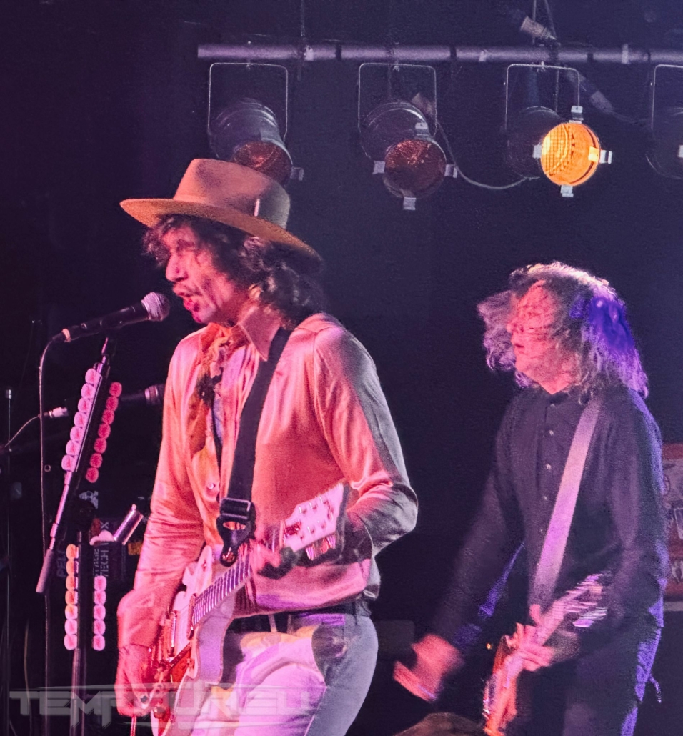 Basso, il fratello di Hawkins Daniel alla chitarra ed alla fine come in un trionfo con la sua camicia dorata traslucida, cappello alla Johnny Depp, pantalone bianco a zampa di elefante e stivale a punta in stile Van Halen arriva il frontman Justin. La band ci propone due ore di show con diciannove brani più un encore che saccheggiano la loro discografia ma in realtà saranno solo quindici, perché cinque sono cover credo fatte al momento per intrattenere il pubblico ma di questo momento ne parlerò dopo…. Aprono la serata con un brano Rock and roll party Cowboy , dal loro nuovo album Dreams On Toast del 2025, brano ben fatto ma con rimandi a brani del tempo dei Poison nulla di che, meno male che si attinge subito al loro passato con Growing On Me dal loro primo album Permission To Land brano spettacolare di un’energia e potenza unica riascoltandolo, sono ripiombato ventidue anni fa all’epoca avevo venticinque anni impazzivo per Him e Type O Negative (tuttora), eppure quando passarono il video su MTV capii che erano geniali!! Veramente bella in sede live. Altra bomba dal passato Get Your Hands off My Woman dove il singer dimostra che la voce non è diminuita ma migliorata come il buon vino e l’apporto in sede ritmica ha un quid in più grazie a Rufus Taylor che alla batteria è un muro sonoro veramente figlio d’arte del padre anzi credo che a tecnica gli sia superiore perchè con i Queen faceva cose più semplici invece il figlio è molto più tecnico e metal. Proseguono brani dall’ultimo repertorio Mortal Dread e Motorheart e Walking