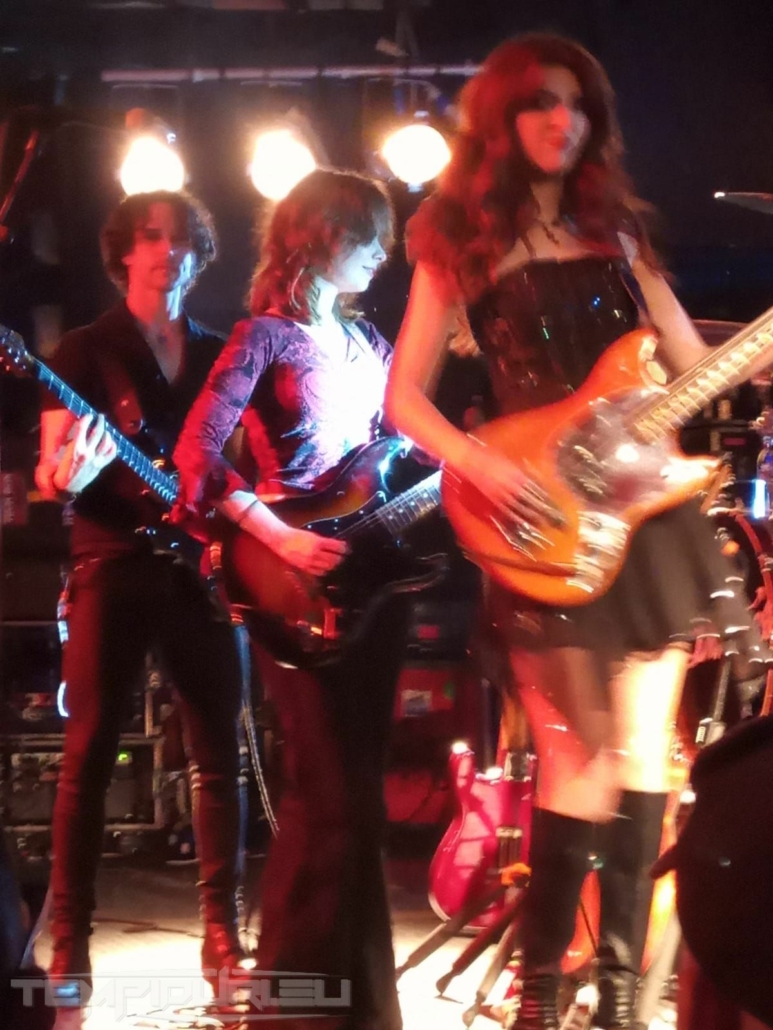 Prima band a salire sul palco dell’Orion Live Club sono gli Irlandesi Dea Matrona band con all’attivo un album autoprodotto fanno da spalla per il tour dei The Darkness. Propongono un alternative rock a tinte anni settanta anche dal vestiario (la bassista sembra Patty Bravo castana) molto soft un misto tra Patty Smith/Garbage e The Corrs più cupi. Bravi ma sinceramente li ho trovati un pò fuori contesto per la serata secondo me erano più adatti di spalla per i Depeche Mode, ma con il glam sinceramente “ ci azzeccano poco come direbbe Antonio di Pietro ” band legata molto a sonorità elettro pop ma poco all’hard rock.